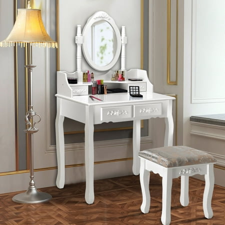 Costway Vanity Wood Makeup Dressing Table Stool Set ...