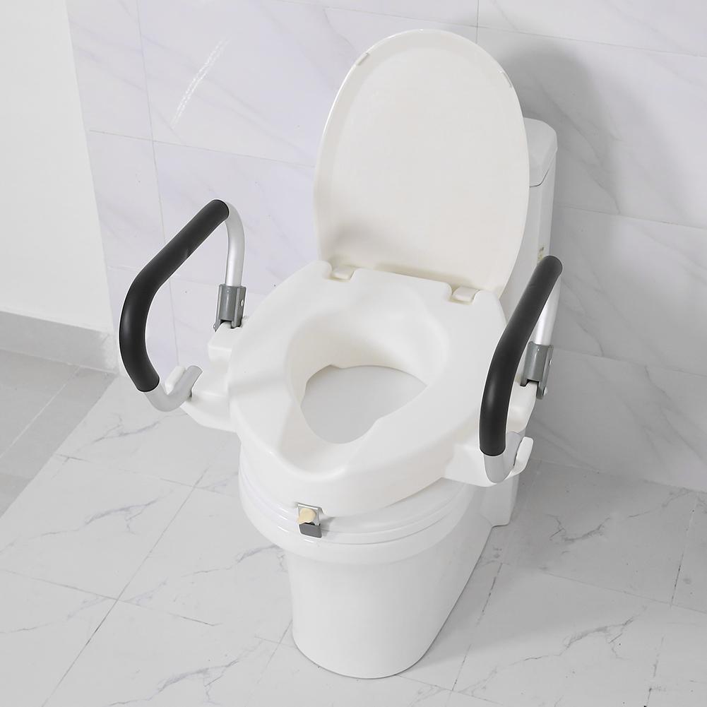A wonderful raised toilet seat with handles that will help your elderly or disabled to use a toilet safely. Raised toilet seats and raisers increase the height of the average toilet seat. It is secured to an existing toilet by means of two adjustable 'L' The plastic lid makes it more discreet and aesthetically pleasing.